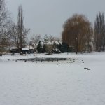 V Mestskom parku v Lučenci zostal kačkám a labutiam nezamrznutý len malý kúsok vodnej plochy