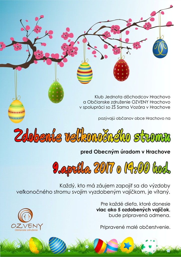 Atmosféra blížiacej sa Veľkej noci bude v budove Prvého slovenského gymnázia v Revúcej umocnená jarmokom tradičných veľkonočných ľudovoumeleckých výrobkov. Ten potrvá od stredy 5. do piatku 7. apríla 2017. „V nedeľu 9. apríla od 14:00 zase zaplnia strom v centre Hrachova stovky veľkonočných vajíčok, ku ktorým môžete pridať aj tie vaše,“ informovala manažérka MAS.