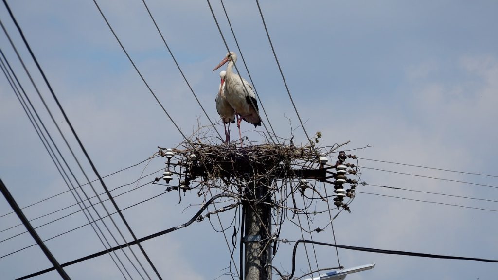 VEĽKÉ TERIAKOVCE – Väčšina z nás by pri výbere nového bývania zrejme uprednostnila miesto mimo rušných dopravných ťahov či prenosových energetických sietí. Párik bocianov, ktorý sa prednedávnom usadil vo Veľkých Teriakovciach pri Rimavskej Sobote, má však zrejme opačný vkus. Svoje hniezdo si bociany postavili na betónovom stĺpe, medzi natiahnutými káblami. Doslova nad rušnou vozovkou do Hnúšte, ktorou denne prejdú tisícky áut.