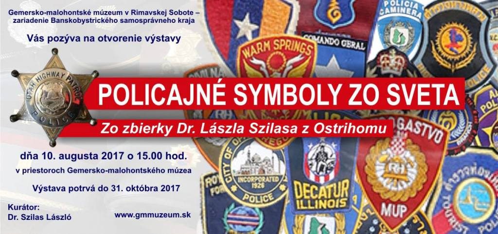 Gemersko-malohontské múzeum v Rimavskej Sobote otvára vo štvrtok 10. augusta ďalšiu výstavu Policajné symboly zo sveta. Jej autorom je súkromný zberateľ Lászlo Szilas z Ostrihomu, ktorý sa tomuto koníčku venuje už 25 rokov. „Vo svojej zbierke vlastní nášivky na rukávy, odznaky, čiapky, ocenenia, medaily i celé uniformy zo 127 štátov sveta, ktoré sa viažu k štátnej polícii, colnej správe, pohraničnej polícii a obecnej polícii,“ povedala manažérka MAS. Výstava potrvá do konca októbra.