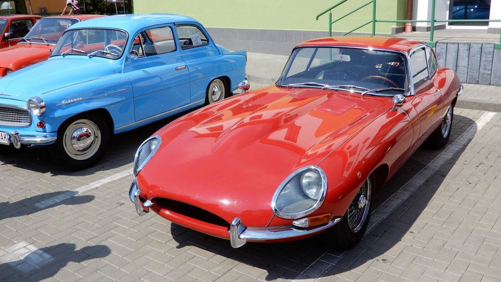 Jaguar E-Type. Ďalšia legenda, ktorá si zahrala v mnohých filmoch. Okrem toho sa viackrát umiestnila na popredných miestach v rôznych rebríčkoch najkrajších áut histórie.