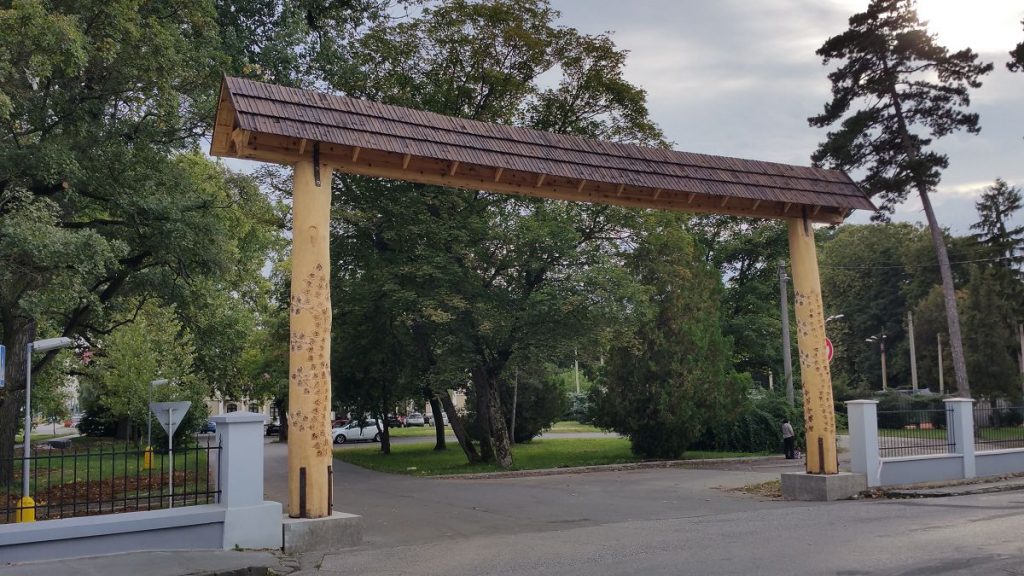 Práce však postupujú i v ďalších častiach záhrady. Viditeľné je to hneď na „vstupnej bráne“, ktorá má už natretú šindľovú strechu a drevené piliere rezbári vyzdobili listami.