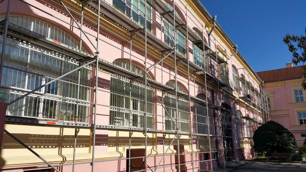 Pri stene múzea už stojí lešenie, ktoré robotníci postavili počas tohto týždňa. V rámci rekonštrukcie budú okrem iného vymenené budú i okná na presklenej chodbe, ktorú Gemersko-malohontské múzeum využíva na organizovanie rôznych výstav.