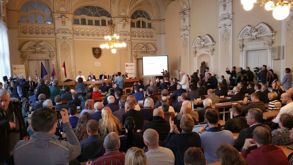 RIMAVSKÁ SOBOTA – Pred preplnenou zasadacou sálou bývalého župného domu na Námestí Mihálya Tompu v Rimavskej Sobote dnes (4. 12.) na ustanovujúcom zasadnutí krajského zastupiteľstva odovzdal funkciu doterajší predseda Banskobystrického samosprávneho kraja (BBSK) Marian Kotleba svojmu nástupcovi, Jánovi Lunterovi. Ten aj spolu so 49 novozvolenými krajskými poslancami zložili príslušné sľuby.