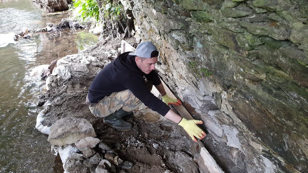 Dodal, že v tomto prípade bohužiaľ na opravu nemohli použiť tradičnú metódu murovania za pomoci vápennej malty, keďže im neustále presakovala spodná voda. „Použili sme teda klasický suchý betón. Snažili sme sa však využívať ho citlivo a použili sme čo najviac skál. Zvyšok murárskych prác samozrejme robíme s vápennou maltou,“ podotkol s tým, že ďalšou dôležitou prácou bolo vybudovanie nábehového múra, do ktorého sa opiera pritekajúca voda, ktorú odkláňa pod klenbu, aby nevymývala základy.