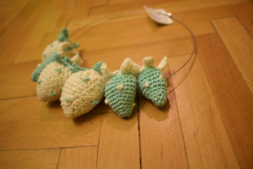 No, ja som to poňala skôr netradične:-) Napríklad nikto ešte asi nevidel modrú jahodu. Chcela som sa však zamerať hlavne na to, že sa nemusia háčkovať len klasické obrusy a dečky, ale dajú sa háčkovať aj brošne, srdiečka, hračky či rôzne iné drobné veci, nazývané amigurumi. Skúsila som aj háčkovaný náhrdelník. Je to dobrá technika na oddýchnutie.