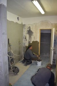 Rekonštrukčné práce v telocvični sú už v týchto dňoch v plnom prúde. „Prebieha výmena obkladov a dlažby, sanitnej inštalácie a montuje sa kompletne nová zdravotechnika, to znamená voda a kanalizácia a dva nové bojlery na ohrev vody,“ vymenoval Vanko. Práce majú byť hotové koncom tohto roka.