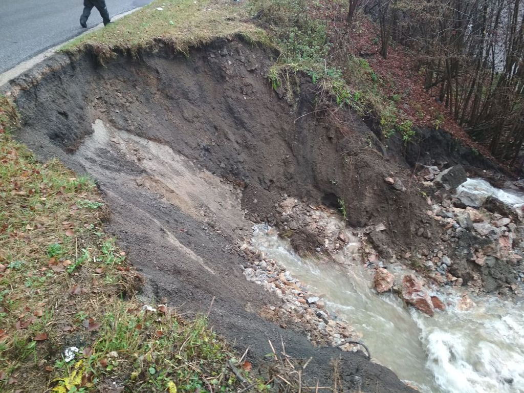 DOPLNENÉ 14. 11. o 16:30: Ako polícia informuje na Facebooku, pri poškodení cesty II/531 vykonali predbežné opatrenia. Dodáva, že komunikácia bude sprejazdnená až po spevnení a zastabilizovaní svahu a krajnice.