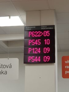Lenže, chybný predpoklad, automat zrazu začne ‚volať‘ zákazníkov s číslami z úplne inej série, povedzme P787, P788, atď. Vaša séria je mimo hry aj 10 či 15 minút. Veríme, že takéto delenie do sérií má nejaké opodstatnenie, ale pre zákazníkov je zmätočné. Čerešničkou na torte je fakt, že o 18:00 systém bez upozornenia prestane vyvolávať zákazníkov (ale tabuľa zostane svietiť) a k okienkam sa musia ‚natlačiť‘ do radov ako za starých dobrých čias.