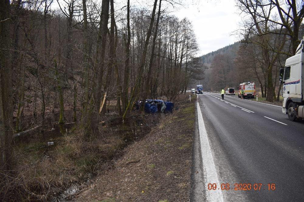 Ako dodáva, šofér s autom dostal šmyk a zišiel z cesty, kde sa vozidlo prevrátilo a ostalo stáť na pravom boku vo vode. „Vodič sa pri nehode vážnejšie nezranil,“ zdôrazňuje KR PZ.