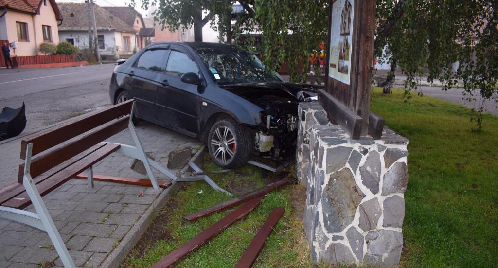 „V miernej ľavotočivej zákrute nezvládol riadenie, narazil do oplotenia a kovovej brány rodinného domu, ďalej do stĺpa elektrického vedenia, dreveného oplotenia a betónového múrika ďalšieho rodinného domu. Odtiaľ ho odrazilo cez vozovku k zastávke autobusu, kde poškodil drevenú lavičku a ostal stáť zaseknutý vo vozidle,“ napísala polícia na facebookovej stránke.