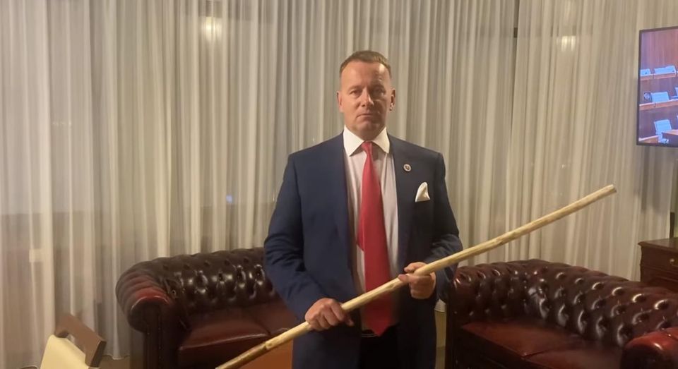„Odovzdal mu ju so slovami obrovskej kritiky na túto vládu, s tým, že za stav zdravotníctva či súdnictva, ale aj iných oblastí v našom okrese môže práve táto vláda. Ale najmä s tým, že palicu Borisovi Kollárovi dáva preto, aby ňou ‚vylátal‘ Igora Matoviča, ktorý je podľa neho hanbou slovenskej politiky,“ vysvetlil Kvetko.