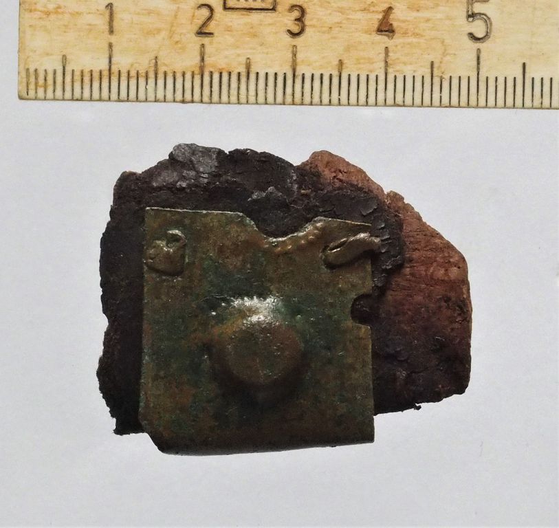 Počas archeologického výskumu bola objavená aj háčiková spona s prierezovou záchytkou. Chrbát spony je zdobený plasticky vystupujúcim nápisom v gotickej minuskule „maria“. Spona pochádza z neskorogotického obdobia.