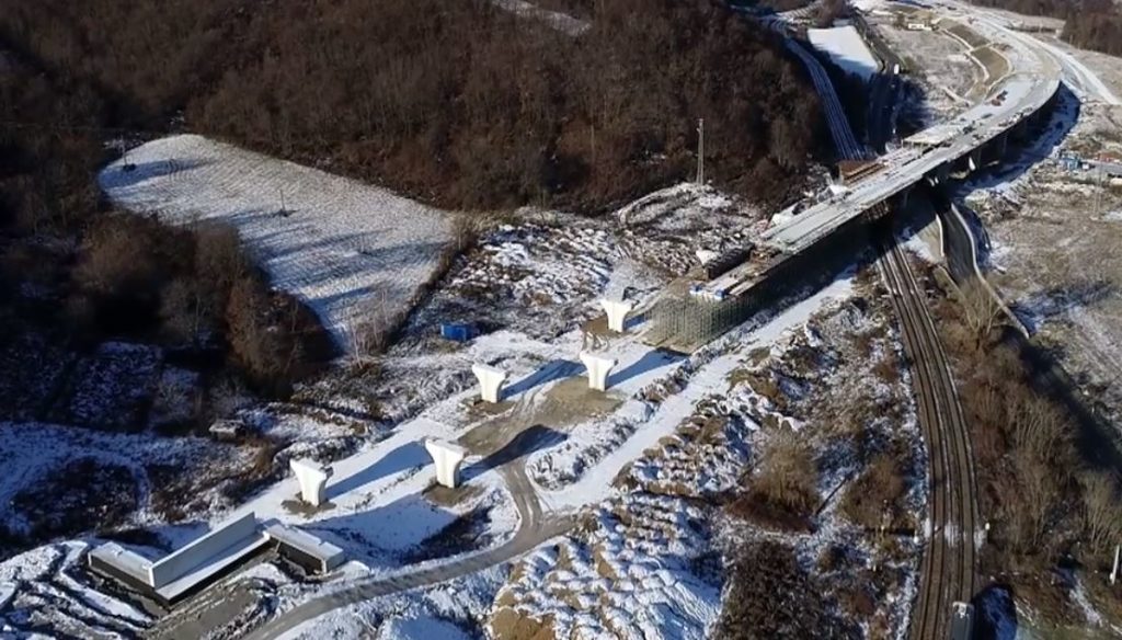 Video sa začína pred dedinou Mýtna v smere od Píly, kde je rozostavané dlhé premostenie ponad existujúcu cestu I/16. Ako vo videu vidieť, zatiaľ nestojí ani polovica mosta, pričom zhruba na tretine sú postavené iba piliere.