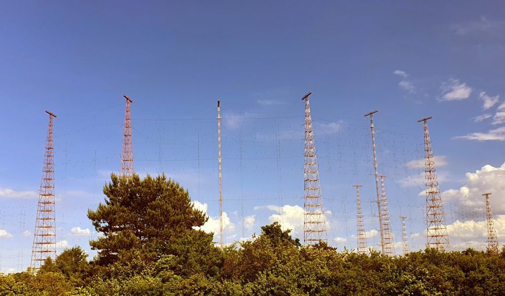Je to rozdiel v porovnaní s krátkovlnným vysielačom, v rámci ktorého už spomínané stožiare plnili iba nosnú úlohu. Pri pohľade z kratšej vzdialenosti sa medzi nimi totiž dajú jasne rozpoznať natiahnuté vedenia anténneho poľa.