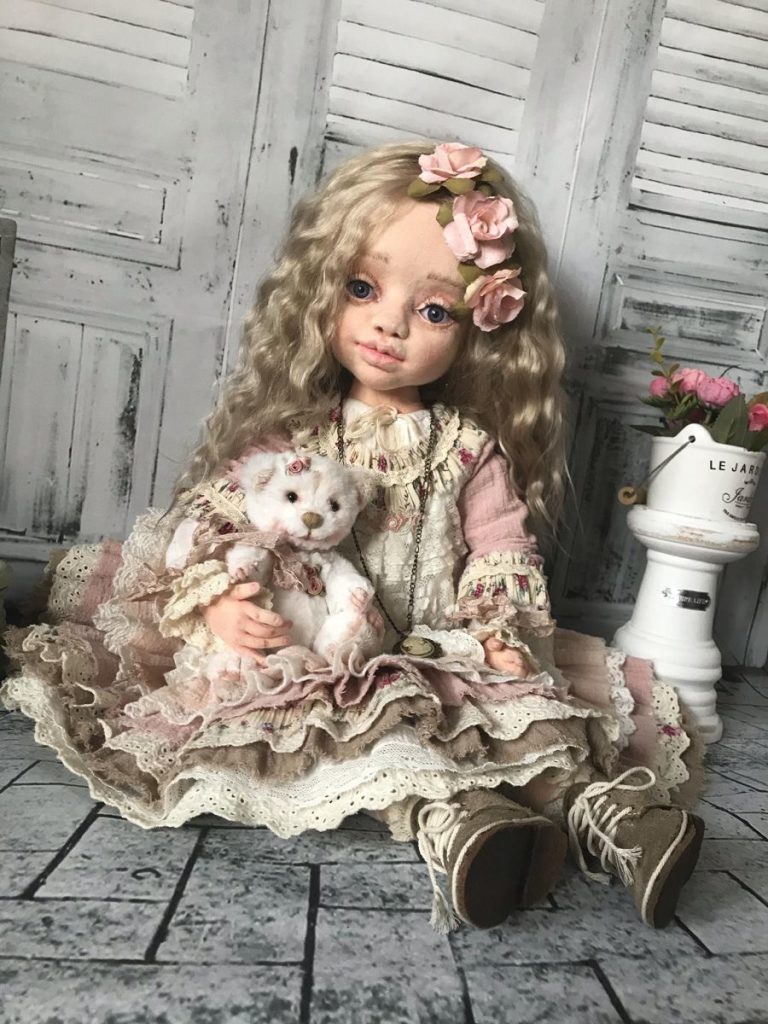 Hlavy bábik umelkyňa plstí z vlny a telíčko z dutých polyesterových vlákien, potiahnutých úpletom telovej farby, aby pripomínalo pokožku. „Následne tvaruje všetky detaily ako prsty, nechty, na ktoré sa takto jemne nezameriavajú ani výrobcovia, ktorí bábiky produkujú strojovo. Zaujímavosťou sú tiež vlasy bábik, ktoré sú vyrábané z kozích chlpov,“ konkretizovala Mázorová. Rôzne čipky a doplnky na bábiky má umelkyňa podľa kurátorky z mnohých krajín sveta, keďže jej manžel veľa cestuje a prináša jej rôzne tkaniny a ďalšie potrebné veci.