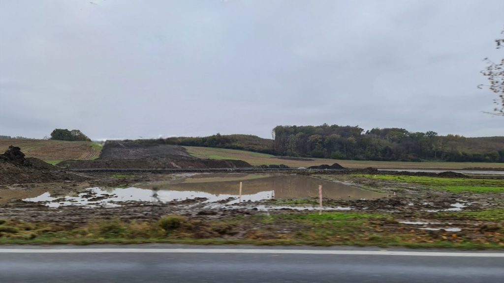 Medzi plánovanou R2 a budúcim parkom je priestor na uskladnenie ornice a podorničia, ktoré boli zhrnuté z miesta výstavby. Na fotografii nižšie jasne vidieť, že na tento účel lokalita skutočne slúži. Červenou farbou je na pláne vyznačená dočasná obslužná komunikácia z kameniva, ktorá slúži pre účely prípravy a výstavby parku.