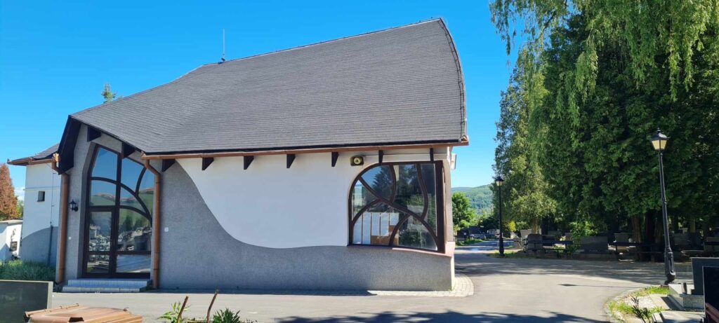 „Ak je však taký vážny záujem, v podobnom organickom štýle ako je budova dáme naprojektovať aj prestrešenie.“ Podľa neho však riešenie nie je z technického hľadiska jednoduché. „Medzi priestorom, kde sa prístrešok dá postaviť a domom smútku, vedie príjazdová cesta. Na toto sa bude musieť prihliadnuť.“