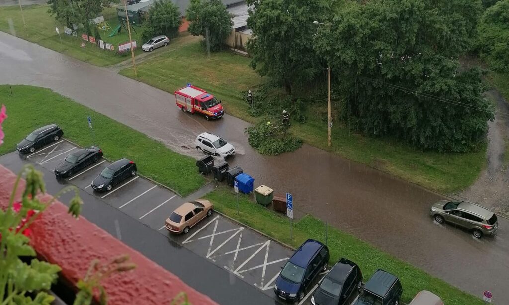Na sídlisku Západ na Ulici L. Svobodu zase silný vietor vyvrátil na cestu jeden menší strom. Odstraňovali ho hasiči.