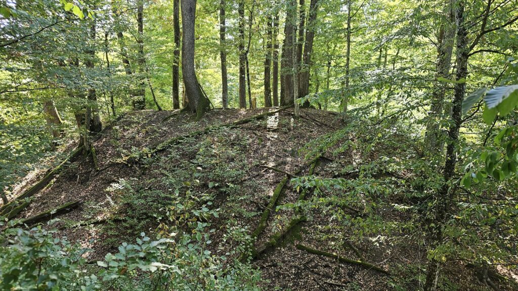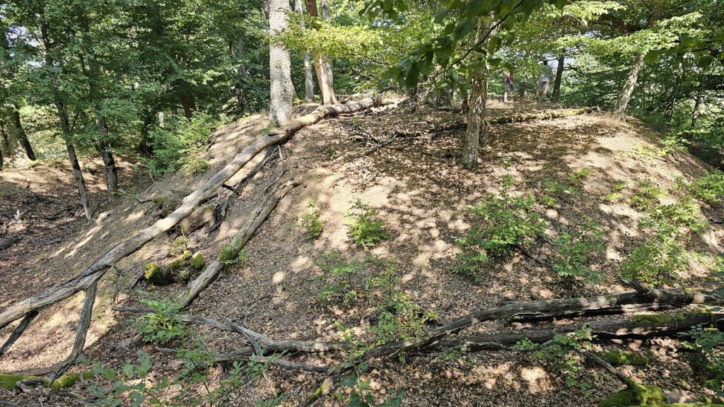 To však nie je všetko. Asi 55 metrov od predpolia bolo vybudované prvé predsunuté opevnenie mierne oválneho tvaru s priemerom zhruba 25 metrov. No a asi 175 metrov od neho, na vrchole kopca príznačne nazvaného Hrad, sa nachádza ďalšia externá fortifikácia.