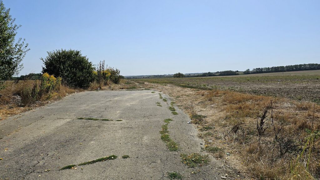 Posledná komunikácia smeruje rovno a po asi dvesto metrov zatáča doľava. Hoci je asfalt pomerne v dobrom stave, zeleň sa na ňu tlačí z oboch strán a na veľkej časti už úplne zabrala široký chodník pri ceste. Ak ňou budete pokračovať aj za zákrutou, prejdete ešte asi 80 metrov a zistíte, že asfaltka zrazu končí pri poli.