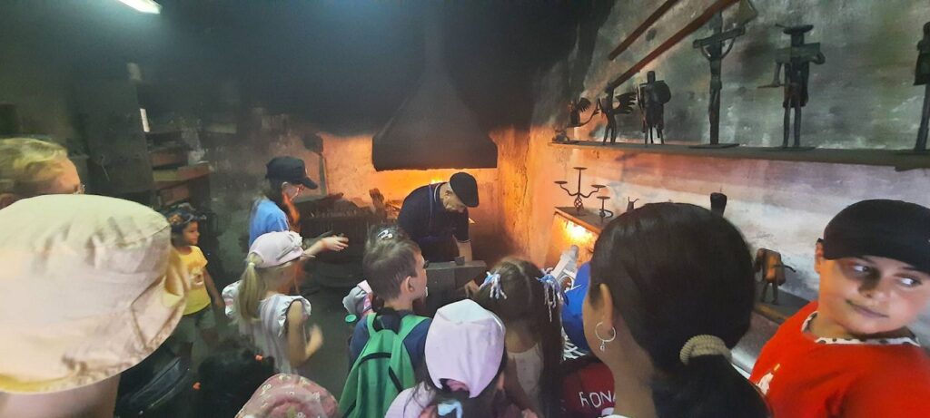V rámci remeselného workshopu si deti a mládež mali zase možnosť pozrieť a oboznámiť sa s prácou umeleckého a remeselného kováča Igora Radiča z Klenovca, ktorý im ukázal svoju prácu, svoje výrobky z kovu a deti si mohli priamo kováčsku prácu aj vyskúšať.