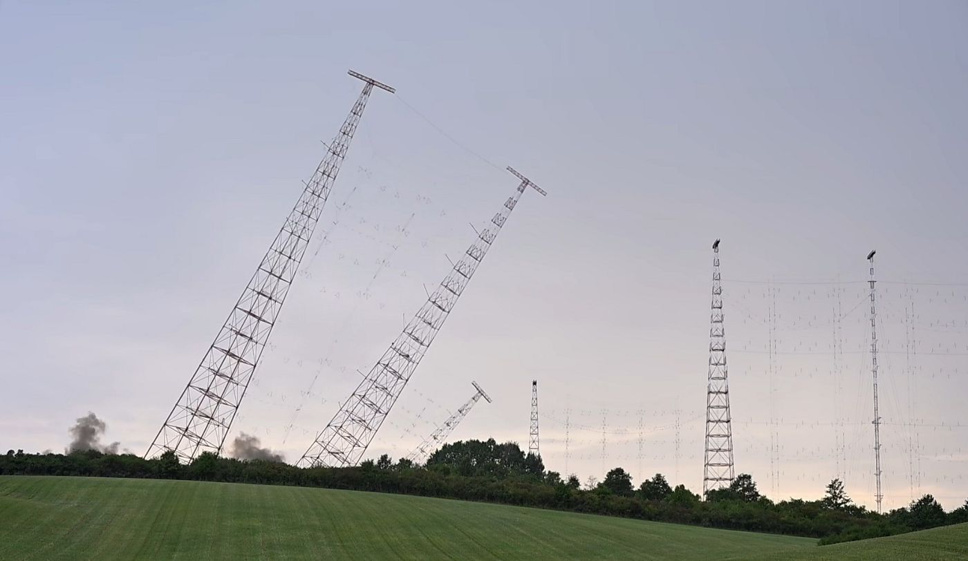 UZOVSKÁ PANICA – Búranie Vysielača Rimavská Sobota sa začalo. V sobotu (2. 8. 2025) večer pyrotechnici odstrelili v areáli vysielača pri Uzovskej Panici tri prvé stožiare, ktoré slúžili ako nosiče antén krátkovlnného vysielača. Čoskoro budú nasledovať i ďalšie.