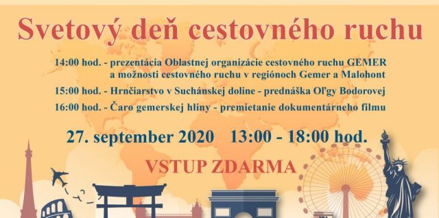 Nová expozícia v Gemersko-malohontskom múzeu (GMM) v Rimavskej Sobote si pripomenie svetový deň cestovného ruchu, ktorý tento rok pripadol na nedeľu 27. 9. 2020. Celý článok R. SOBOTA: V múzeu si pripomenú svetový deň cestovného ruchu