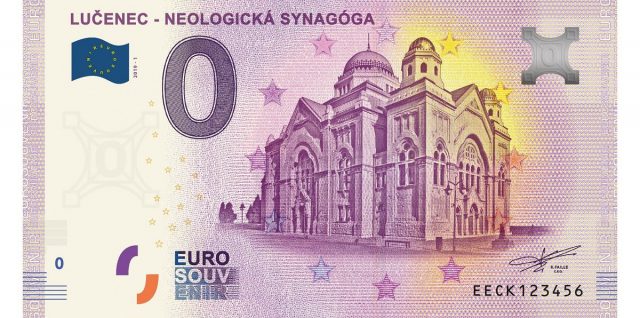 Lučenec vydáva eurobankovku s hodnotou 0 eur, je na nej synagóga